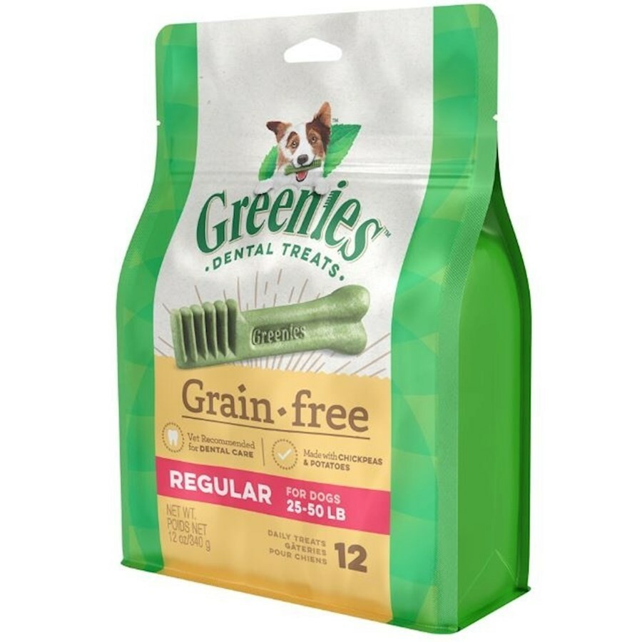 One GREENIES Original Dental Treat a day is all it takes for clean teeth, fresh breath, and a happy dog. Your dog can't wait to sink their teeth into these delicious, original-flavor dental dog breath chews because they feature a delightfully chewy texture that fights plaque and tartar. Irresistibly tasty and incredibly powerful, GREENIES Treats for Dogs are vet-recommended for at-home oral health care and accepted by the VOHC (Veterinary Oral Health Council.) Best of all, these natural dog breath treats are made with highly soluble ingredients that are safe and easy to digest. Give your dog the mouth-wowing treat that helps promote their overall health with GREENIES Dog Treats. Natural Dog Treats Plus Vitamins, Minerals, and Other Nutrients.